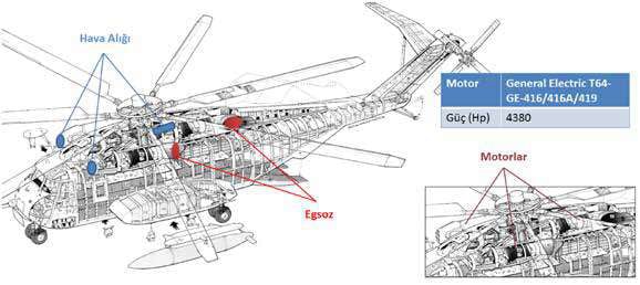 AW101 helikopterinde ise görev isterleri arasında, belirli sayıda personel ile 5 saatlik uçuş süresi, arama radarı, sensörler, iletişim araçları, çeşitli faydalı yüklerin taşınabilmesi vardır. Yapılan fizibilite çalışmasında kalkış yükünün 13 ton olması öngörülmüştür. Bu ağırlıkla helikopterin havalanabilmesi için %54 daha fazla güce ihtiyaçduyulacağı hesaplan mış, gerekli uçuş sertifikalarına sahip olan CT7 motoru değerlendirildiğinde 3 adet motorun ihtiyaç duyulan gücü sağlayacağı belirlenip AW101 helikopterine entegrasyon gerçekleştirilmiştir. Bununla beraber