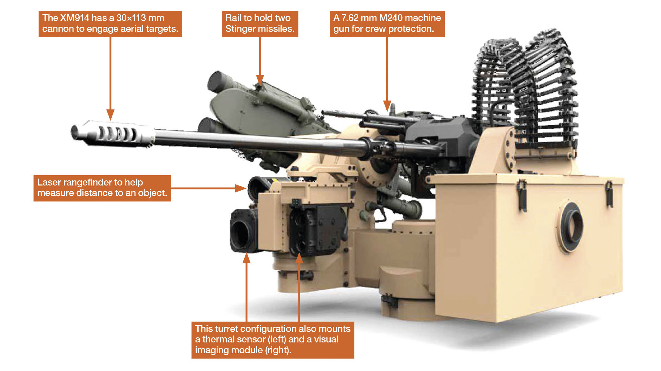 XM914E1, ateşleme pimi darbesi ile ateşlenen, şerit beslemeli 30x113mm mühimmat kullanan bir silah sistemidir. Silah sistemi, kemdi kendine ateş alma önleme sistemi ile birlikte tekli atış ile 200 RPM tam otomatik atış yeteneklerine sahiptir ve çeşitli savaş araçlarına monte edilmiş silah istasyonlarında kullanılabilir.