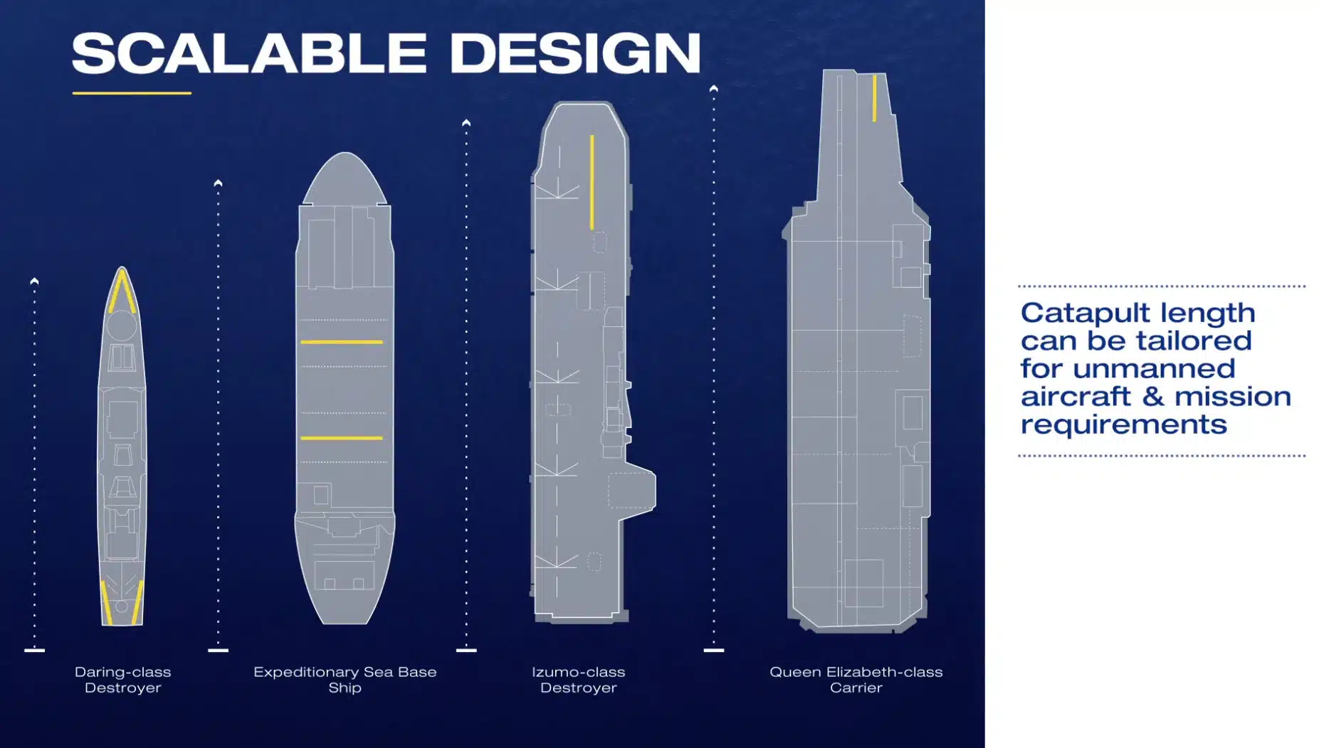 ABD merkezli General Atomics, geliştirdiği elektromanyetik katapult sisteminden türetilen yeni konseptlerini açıkladı. Naval News ile yaptığı söyleşide General Atomics, bu sistemleri; Birleşik Krallık Kraliyet Donanması’na ait Daring sınıfı (Type 45) muhriplerinde ve ABD Donanması’nın Seferi Deniz Üssü (Expeditionary Sea Base) de dahil olmak üzere çeşitli deniz platformlarından insansız hava araçlarının fırlatılabilmesi için geliştirdiğini ifade etti.