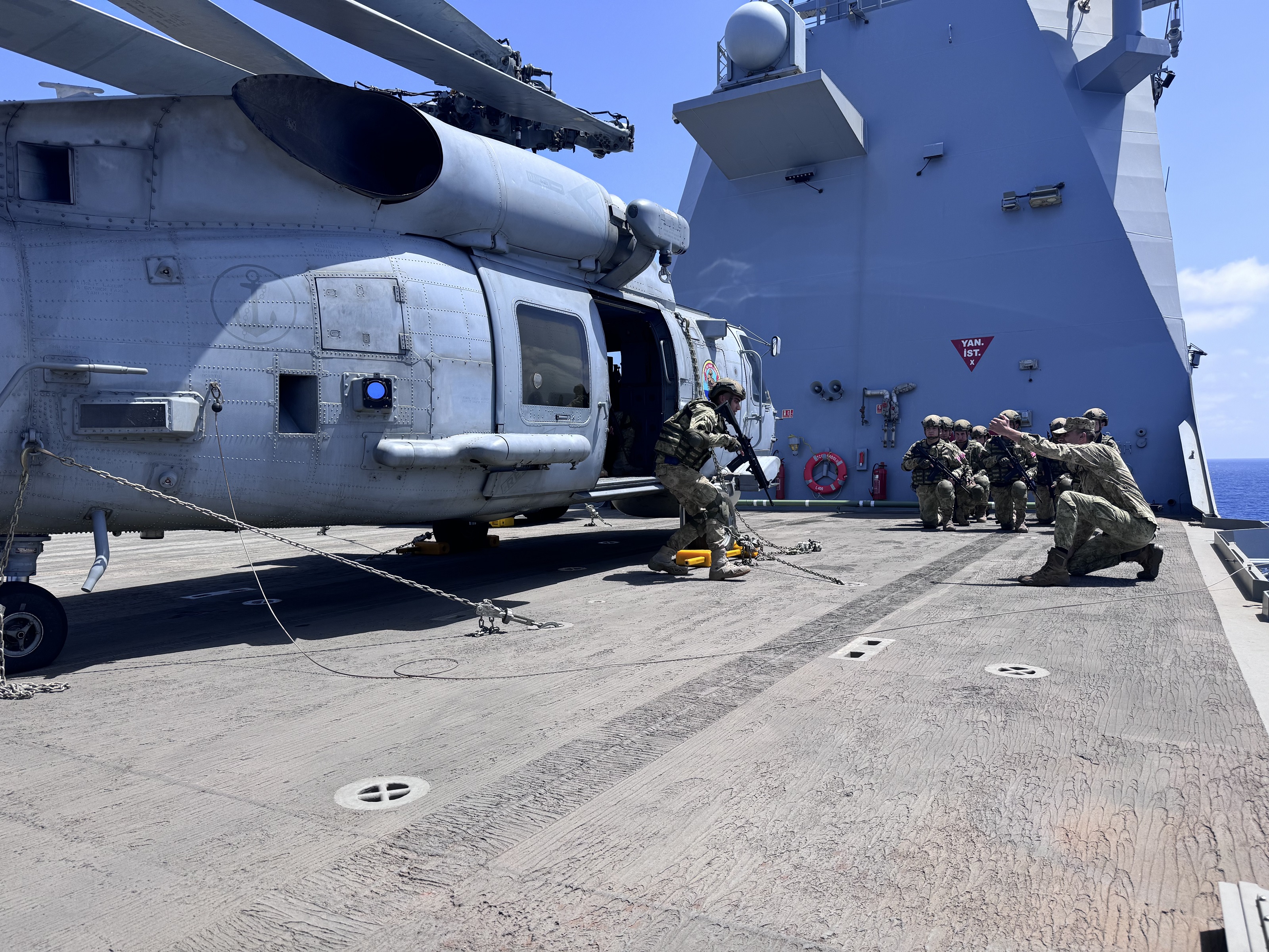 “TCG ANADOLU, TCG SALİHREİS ve TCG BÜYÜKADA’dan oluşan ANADOLU GÖREV GRUBU, Akdeniz Kalkanı Harekâtı kapsamında eğitimler gerçekleştirdi.”