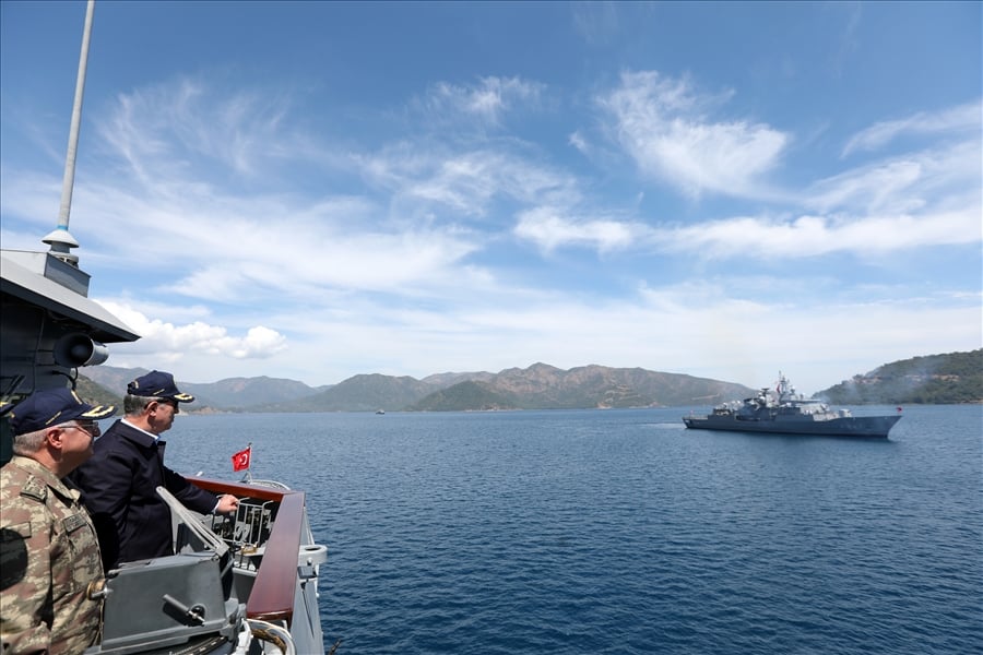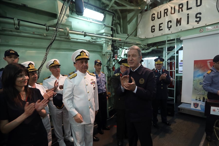 Faaliyetleri takip etmek üzere limandan ayrılan TCG Salihreis’te bulunan Bakan Akar, TCG Kemalreis’ten yapılan top atışlarıyla selamlandı.