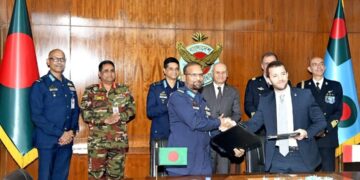 Asya ülkelerinden Bangladeş, İtalya ile Eurofighter uçaklarının tedariki kapsamında Niyet Mektubu imzaladı. Bangladeş Silahlı Kuvvetleri Halkla İlişkiler Birimi tarafından paylaşılan duyuruya göre Bangladeş, Eurofighter savaş uçağını tedarik etmek için ilk adımı attı. Bu bağlamda, Bangladeş Ordusu’nun 2030 hedeflerinde yer alan maddelerden birisi olan savaş uçağı tedariki kapsamında İtalya ile Niyet Mektubu imzalandı. İki taraf arasındaki … Bangladeş’ten Eurofighter savaş uçağı adımı okumayı sürdür