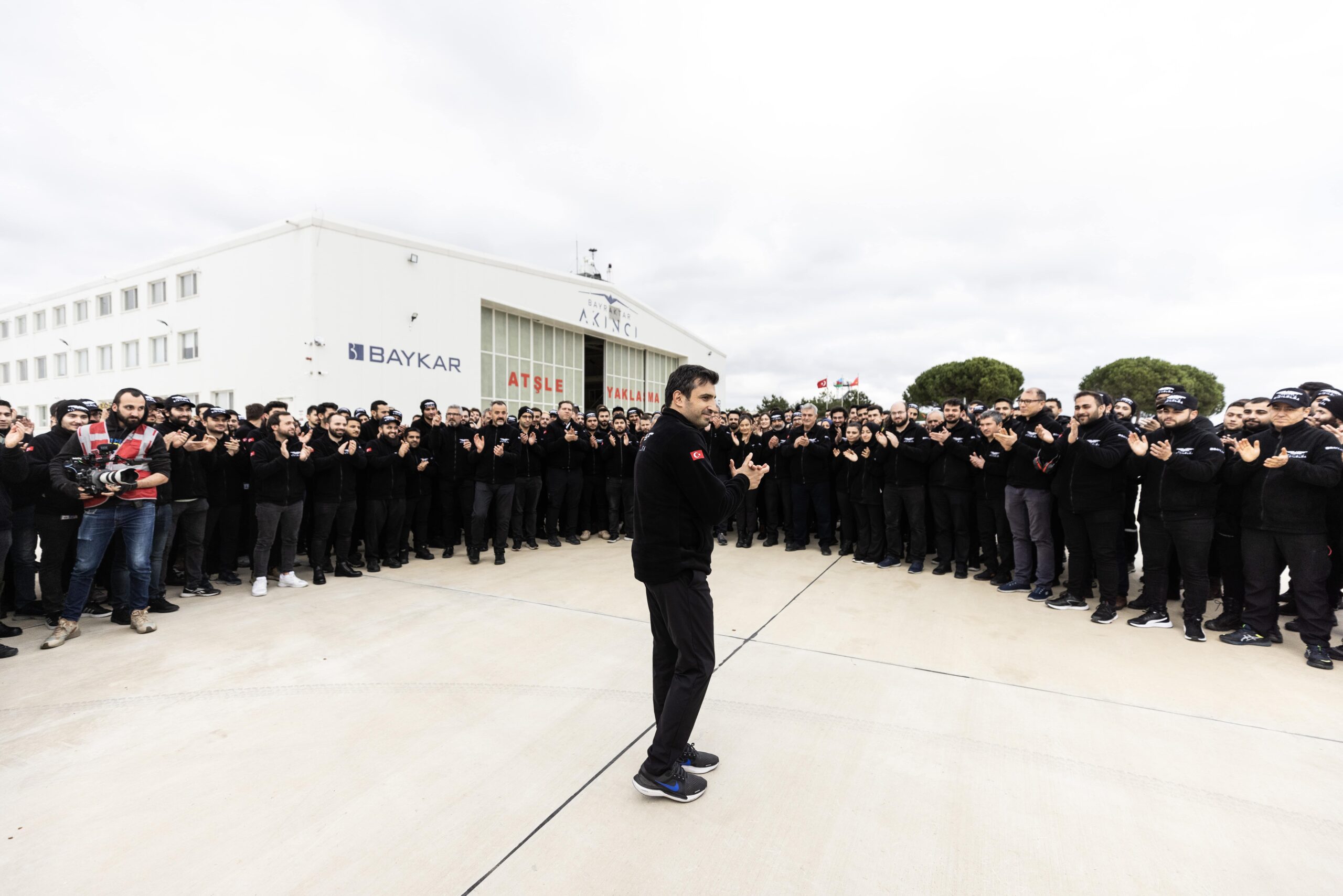 Başarılı ilk uçuşun ardından Baykar ekibine hitap eden Baykar Yönetim Kurulu Başkanı ve Teknoloji Lideri Selçuk Bayraktar,