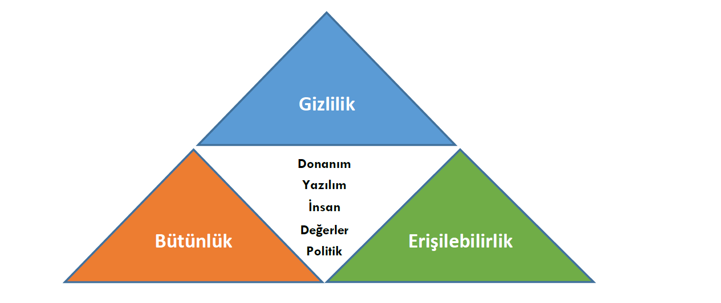 Bu üç kavram, bilgi güvenliği için hedeflenen unsurları somutlaştırmaktadır.