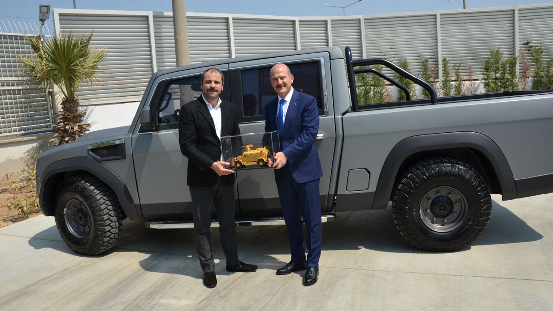 Bakan Soylu’nun ziyaretinde BMC’nin, iç güvenliği sağlayan personelin ihtiyaçlarını dikkate alarak geliştirdiği pikap tipi aracın ilk defa günyüzüne çıkması oldu. Bakan Soylu, aracın direksiyonuna geçerek fabrika içerisinde deneme sürüşü gerçekleştirdi. BMC, pikap tipi aracı özellikle iç güvenlik personelinin ihtiyaçlarını dikkate alarak geliştirdi. Türkiye’nin arazi koşullarına uygun geliştirilen araç, üstün harekat kabiliyeti ve yük taşıma imkanıyla arazideki personele destek sağlayacak.