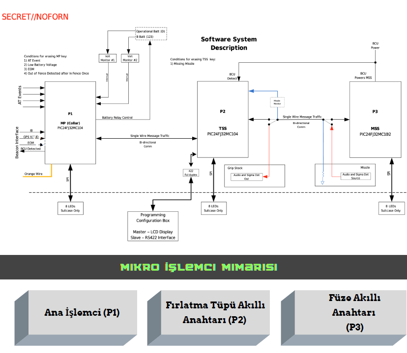 Yazılım mimarisi incelendiğinde, çeşitli fonksiyonları yerine getirmek maksadıyla içlerine mikro denetleyiciler yerleştirildiği görülüyor. P1, P2 ve P3 isimli bu işlemcilerinin yerine getirdiği işlemler detaylı olarak ele alınacaktır.
