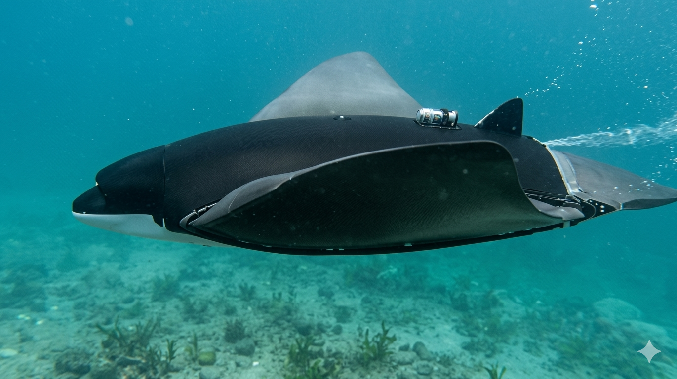 Tasarımsal açıdan bir açık deniz canlısı olan manta vatozunun tercih edilmesi, düz gövde yapısı ve geniş pektoral (göğüs) yüzgeçlerinin sağladığı avantajlardan kaynaklanmaktadır. Diğer balık türlerinde denge kabiliyeti daha sınırlıyken, manta vatozunun gövdesini stabil tutarak yüzgeçleriyle suyu kontrollü bir şekilde tahrik edebilmesi, entegre hassas cihazların operasyonel güvenliği açısından kritik önem taşır.