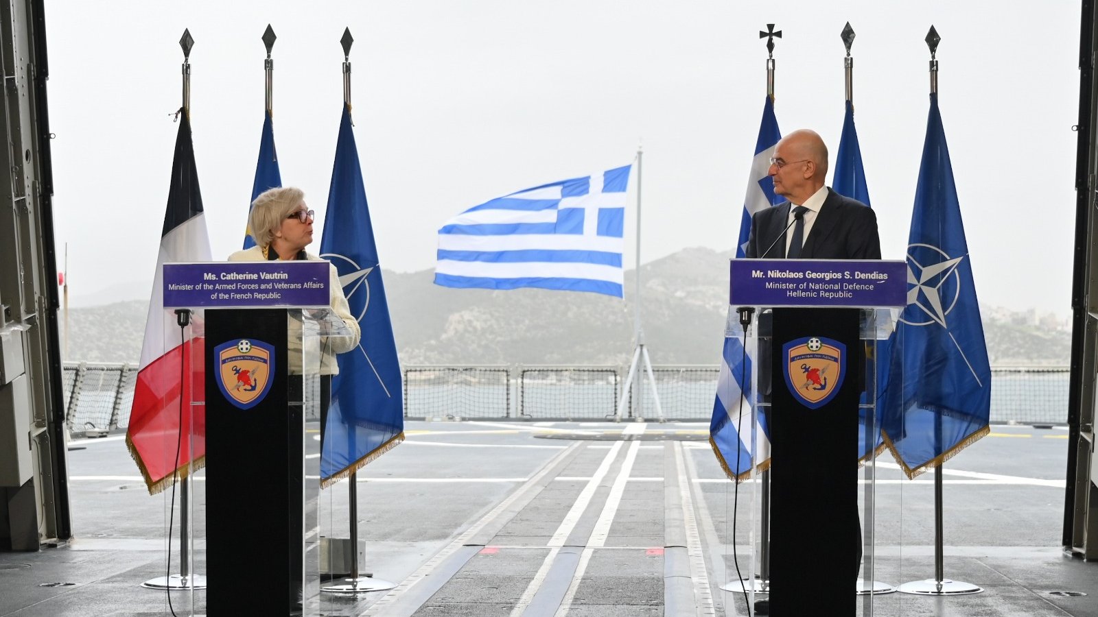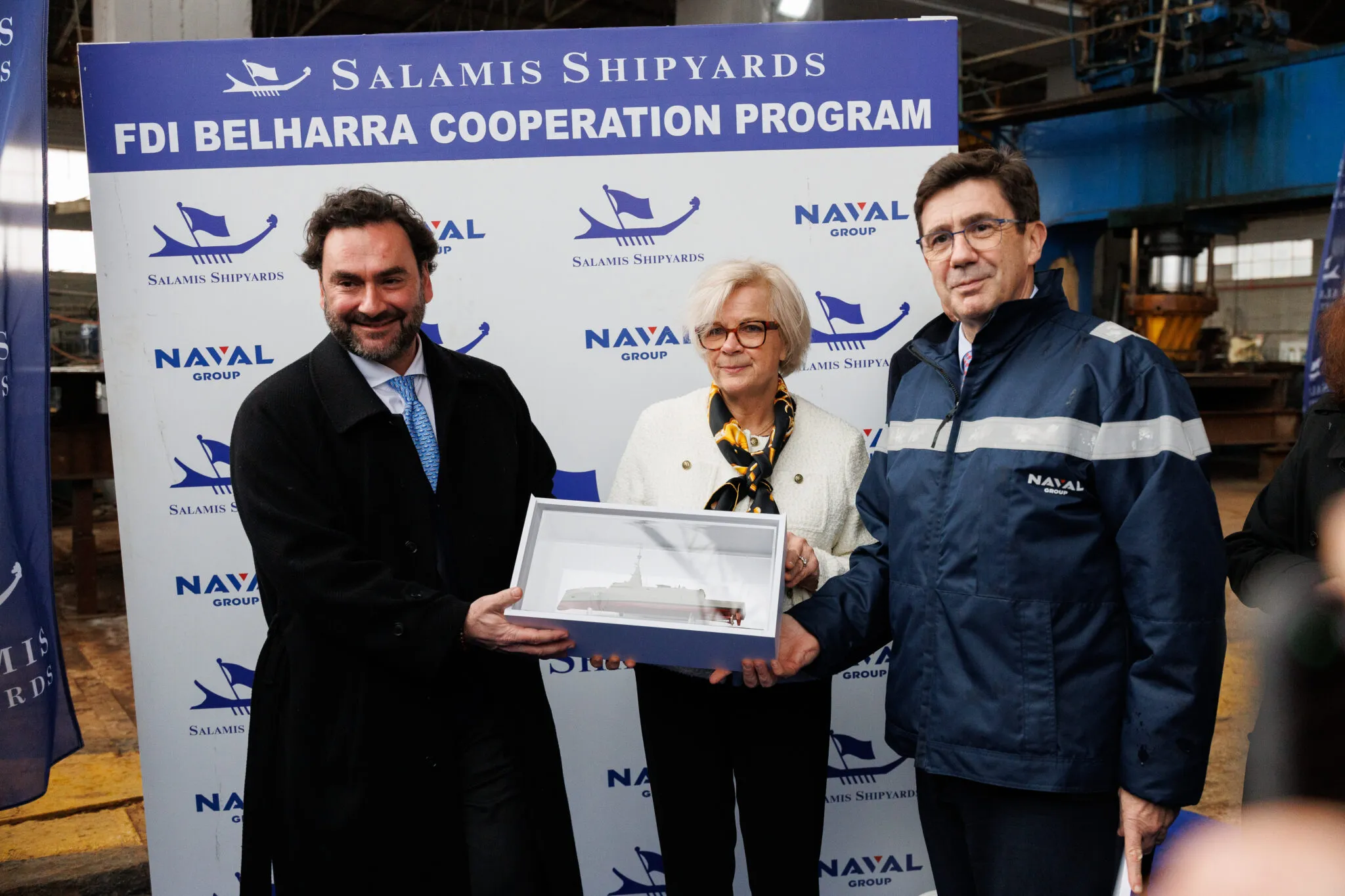 Yunan Salamis Tersaneleri, Fransa Savunma Bakanı Catherine Vautrin’i, Yunanistan’daki Fransa Büyükelçisi Laurence Auer’i, Naval Group CEO’su Pierre-Éric Pommellet’i ve diğer üst düzey konukları ağırladı.