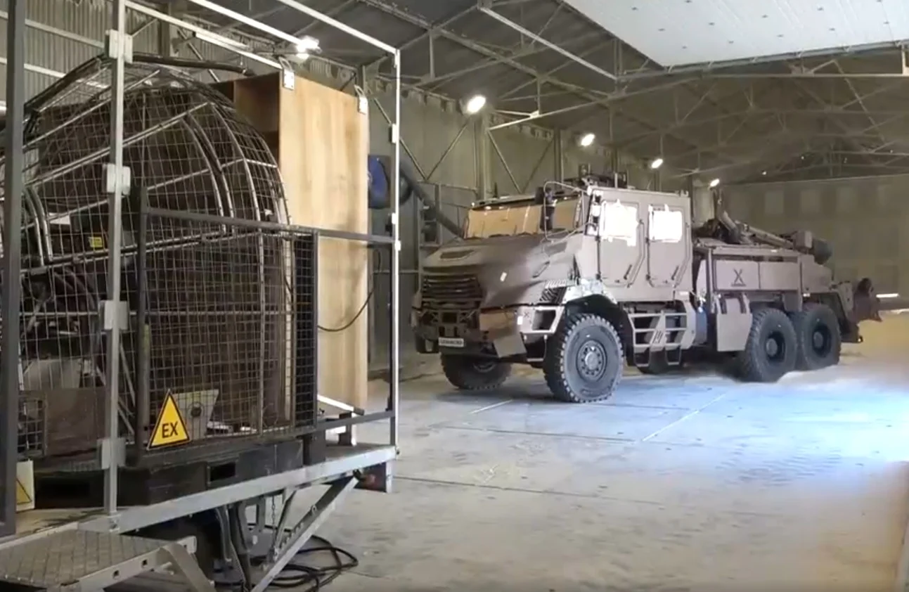 Fransız Savunma Tedarik Ajansı (DGA) CAESAR MkII kundağı motorlu obüsünün en zorlu hava koşullarından bazılarını simüle eden yoğun iklim testlerinden geçtiği görüntüleri yayınladı. Geçtiğimiz süreçte CAESAR obüsü müşterilerini arttırmayı başaran Fransa, bir yandan CAESAR MkII’nin testlerine de devam ediyor. Bu bağlamda DGA, CAESAR MkII’nin +71°C’ye kadar ulaşan kontrollü ortamlarda, simüle edilmiş kum fırtınaları, yüksek nem, dondurucu sıcaklıklar ve şiddetli rüzgarlarla test edildiğini aktardı.