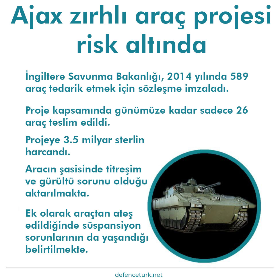 Birleşik Krallık Savunma Bakanlığı, üretici General Dynamics UK ile Ajax’ın güvenliği için anlaşamadıkları için çözümün 2022 yılının sonuna sürebileceği konusunda uyardı. Savunma Bakanlığı, Ajax’ın 2025 yılında tamamen operasyonel olacağına güvenmediğini söyledi.