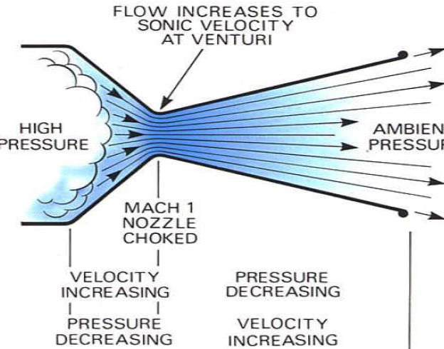 Motor boyunca hava akışının hızı ve basıncı, aerodinamik ve enerji ihtiyaçlarına göre değişir. Örneğin; kompresördeki sıkıştırma işlemi sırasında basınç artarken hız artımına ihtiyaç olmaz. Havanın ısıtılıp iç enerjisinin yanma tarafından arttırıldıktan sonra gazın türbinin döndürmek için kuvvete ihtiyaç olduğundan dolayı hıza ihtiyacı vardır. Çıkış egzozunda ise yüksek çıkış hızına ihtiyacımız vardır.