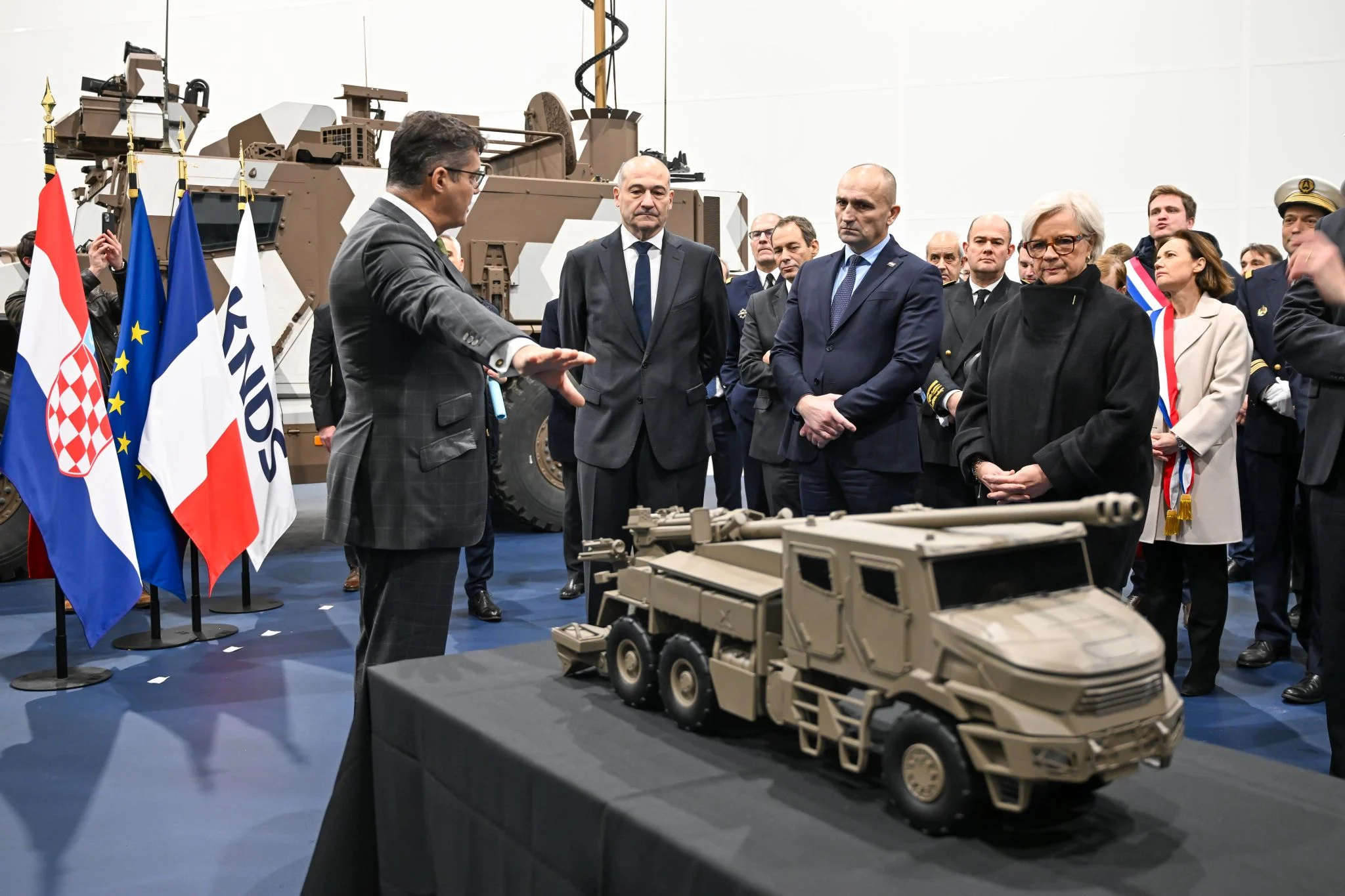 Söz konusu sürecin ilk ayağı Satory’deki KNDS tesisinde; Hırvatistan Savunma Bakanı Ivan Anušić, Fransa Silahlı Kuvvetler ve Gaziler Bakanı Catherine Vautrin ve KNDS CEO’su Jean-Paul Alary’nin katılımıyla anlaşma imzalandı. Daha sonra Paris’teki Élysée Sarayı’nda, Fransa Cumhurbaşkanı Emmanuel Macron ile Hırvatistan Başbakanı Andrej Plenković’in huzurunda yapılan törenle süreç resmen tamamlandı.