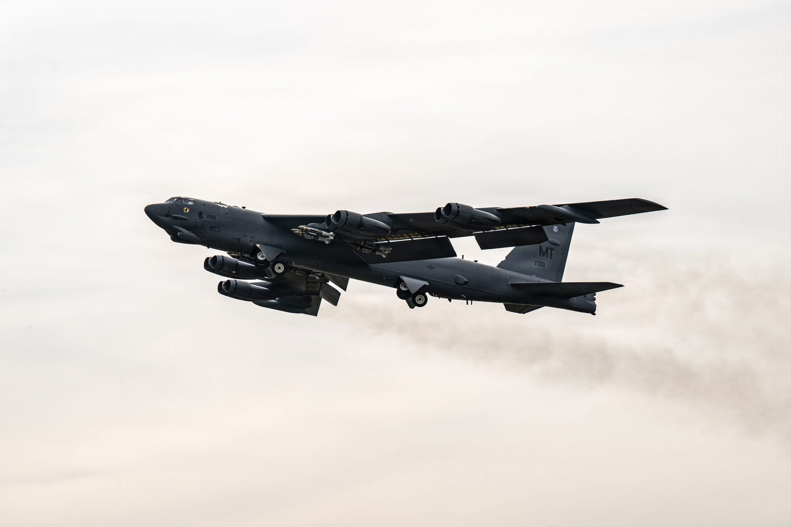 B-52 Stratofortress bombardıman uçağı, 22 Mart 2026’da İran’a yönelik Epic Fury Operasyonu’na katılmak üzere havalanıyor.