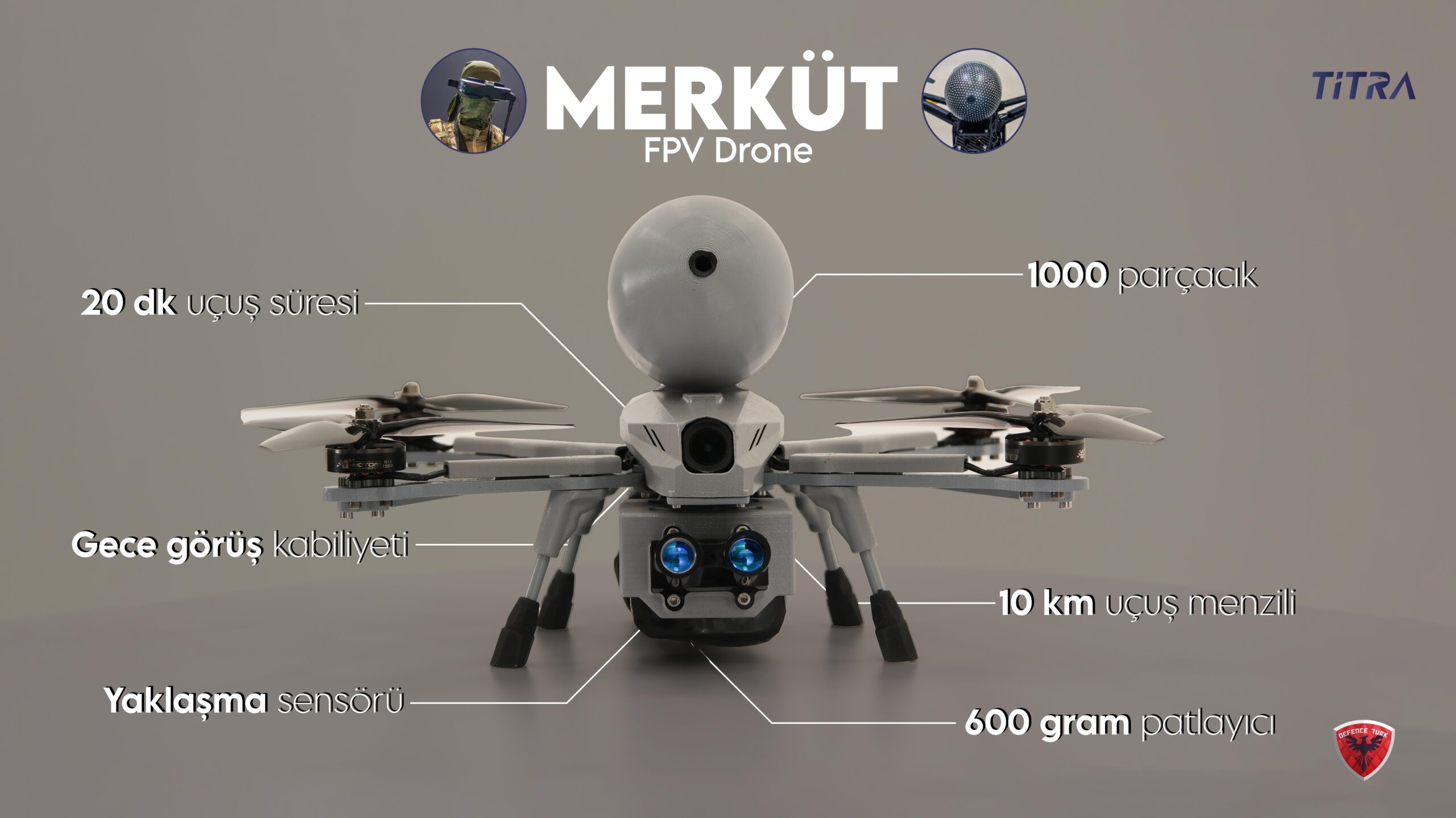 TİTRA Teknoloji tarafından geliştirilen MERKÜT FPV dron, Türk Silahlı Kuvvetleri envanterinde.
