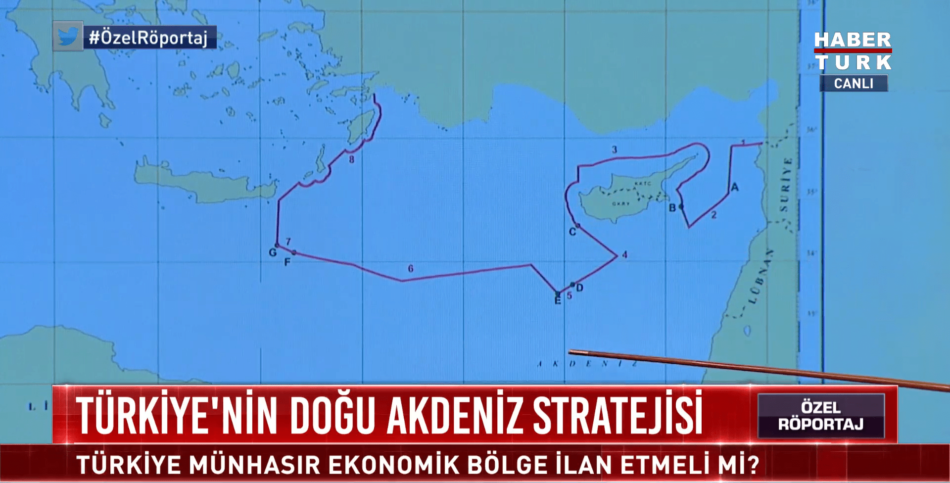 HabertTürk TV’de gazeteci Mehmet Akif Ersoy’un canlı yayınına konuk olan Müstafi Tümamiral Doç. Dr. Cihat Yaycı kendi akademik çalışmaları üzerinden yeniden ‘Mavi Vatan’ haritasını aktardı. Yaycı programda yaptığı konuşmasında, “Her bir karış toprak gibi her damla suya aynı şekilde sahip çıkmalıyız” vurgusunda bulundu. Türkiye’nin Doğu Akdeniz ve Libya Stratejilerinin mimarı olarak bilinen Tümamiral Cihat Yaycı paylaştığı görseller birlikte Türkiye Cumhuriyeti’nin planlı bir şekilde münhasır ekonomik bölge (MEB) ilan etmesi gerektiğini ifade etti. İlan edilecek MEB’lerde herhangi bir hak gasbına maruz kalmamak için ince elenip sık okunması gerektiğini vurguladı.