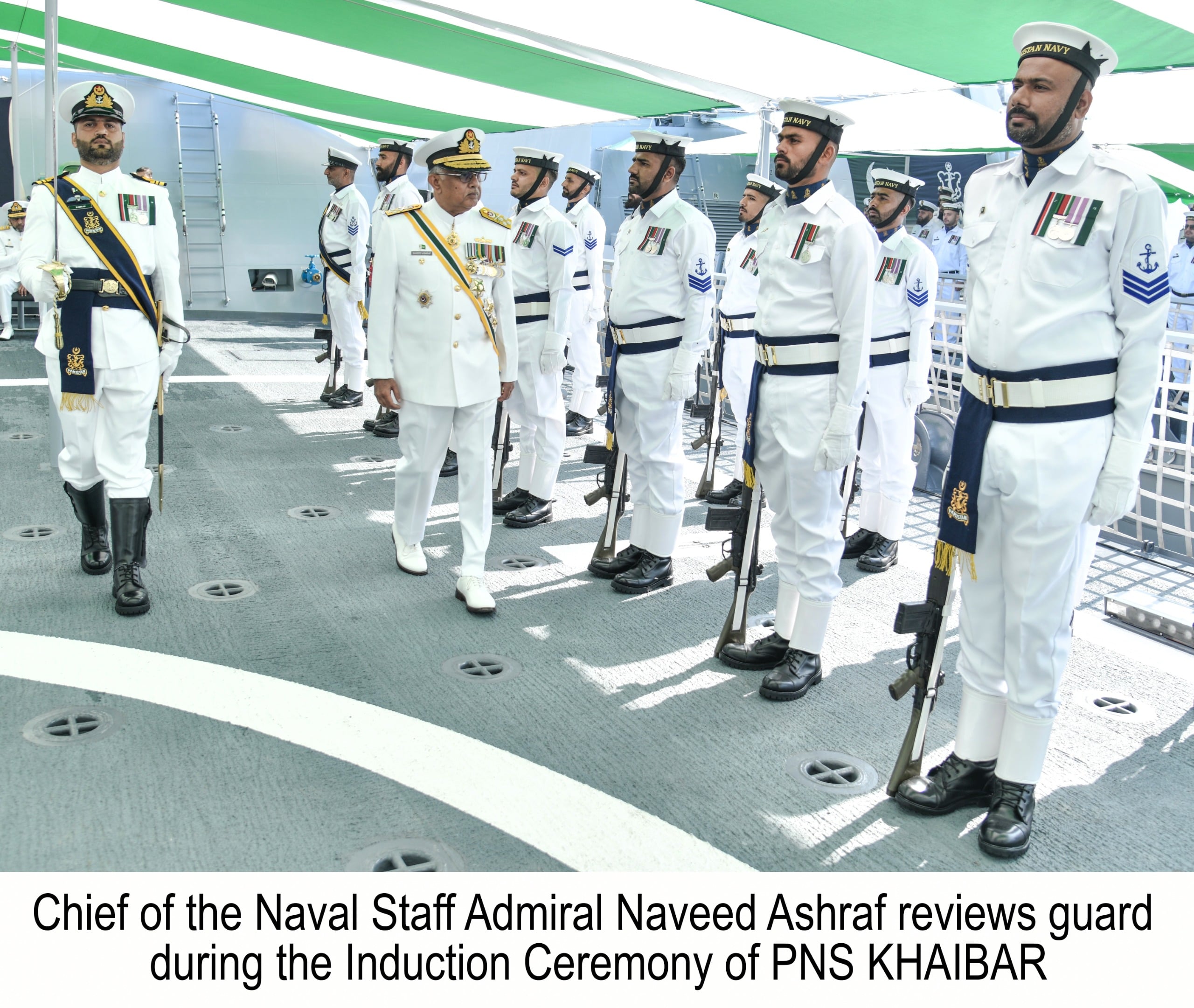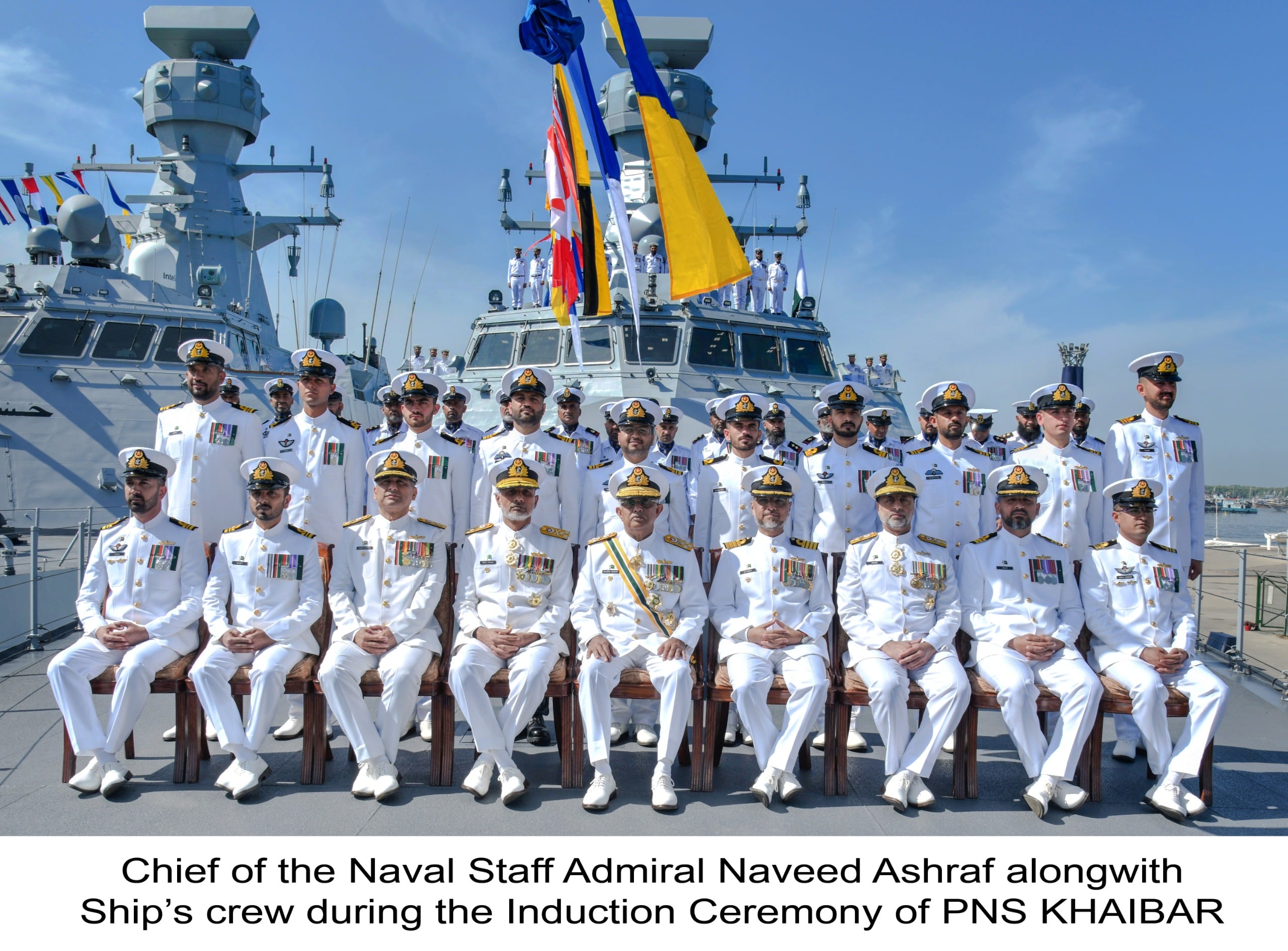 Addressing the induction ceremony of 2nd PN MILGEM Class Corvette PNS KHAIBAR held at Karachi, CNS Adm Naveed Ashraf emphasized a strong, balanced and technologically advanced Navy to safeguard SLOCs and maritime interests. 1/3 pic.twitter.com/QRMKn1J987