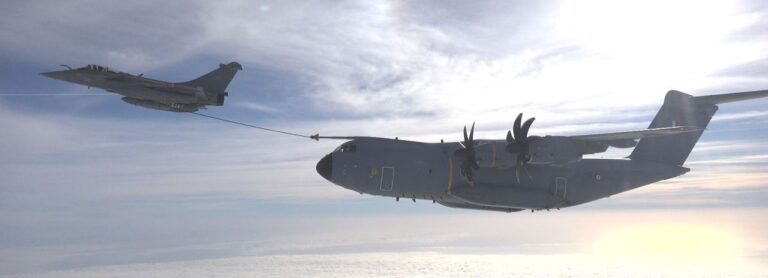 Fransız Donanmasına ait Rafale M savaş uçağından A400M nakliye uçağına ilk kez havadan yakıt ikmali gerçekleştirildi. Fransız Savunma Tedarik Ajansı (DGA) tarafından resmi LinkedIn hesabı üzerinden yapılan habere göre Fransız Donanmasına ait bir Rafale M savaş uçağı, yeni bir yakıt ikmal podunun yeteneklerini test etmek üzere uçuş sırasında A400M nakliye uçağına havadan yakıt ikmali yaptı. … Rafale savaş uçağından A400M’e havada yakıt ikmali okumayı sürdür