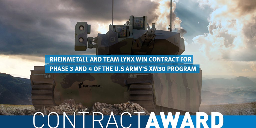 ABD Ordusu, American Rheinmetall Vehicles (Sterling Heights, MI) ve Team Lynx’in sektör lideri şirketleri Textron Systems, Raytheon Technologies, L3Harris Technologies, Allison Transmission ve Anduril Industries ile XM30 Zırhlı Muharebe Aracı Programı olarak adlandırılan beş aşamalı programın Aşama 3 Detaylı Tasarım ve Aşama 4 Prototip Yapım ve Test aşamaları için sözleşme imzaladı.