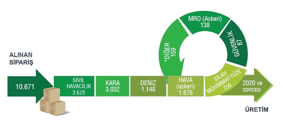 Türkiye İhracatçılar Meclisi’nin açıkladığı 2019 yılı 1 Ocak-31 Aralık dönemi verilerine göre Türk savunma ve havacılık sanayiinin ihracatı önceki yılın aynı dönemine göre %34,6 artarak 2 milyar 740 milyon 988 bin dolar düzeyinde gerçekleşmişti.