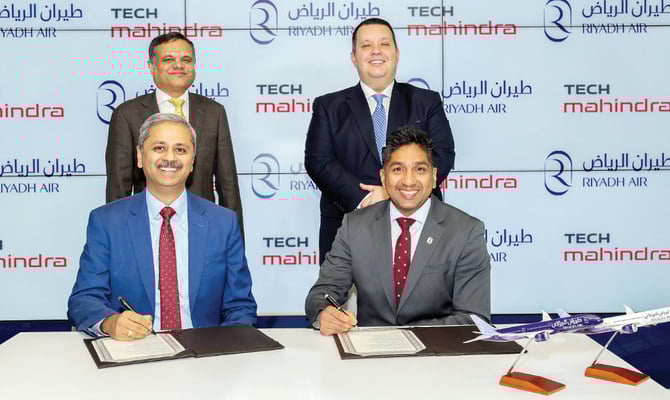 NTGS CEO’su Juan Carlos Estrella ve ERAF Başkan Yardımcısı Fahad Al-Ameel ALAKRAN mobil havam sistemi anlaşmasını imzalıyor. (Görsel: Arab News)