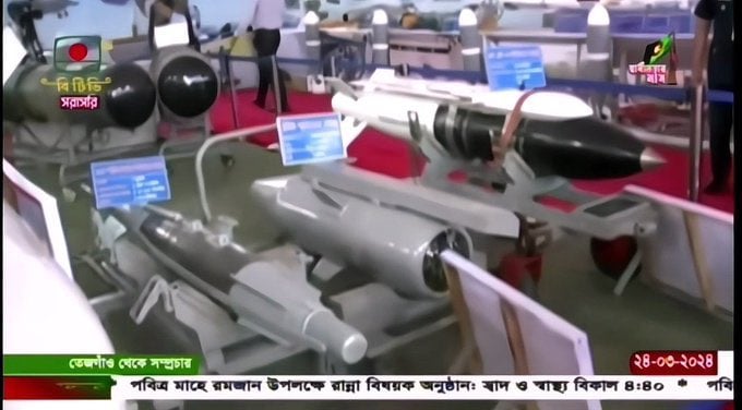 Shakir Imroz isimli kullanıcı, X’te yaptığı paylaşımda Bangladeş’te düzenlenen Arms Show-2024 savunma sanayii fuarında ROKETSAN tarafından geliştirilen sistemlerin de yer aldığını aktardı. Bu bağlamda Bangladeş Hava Kuvvetleri envanterindeki TEBER Lazer Güdüm Kiti ilk defa sergilenirken TRG-230 ve TRG-300 güdümlü topçu füzesi de fuarda yerini aldı.