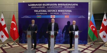 Türkiye, Azarbaycan ve Gürcistan savunma bakanları, üçlü iş birliğini güçlendirmek ve bölgesel güvenliği arttırmak amacıyla Gürcistan’ın Batum şehrinde toplandı. Milli Savunma Bakanı Yaşar Güler, Gürcistan Savunma Bakanı Irakli Chikovani ve Azerbaycan Savunma Bakanı Orgeneral Zakir Hasanıv toplantının ardından Üçlü Mutabakat Metni imzaladı. Milli Savunma Bakanlığı toplantıya dair detayları X resmi hesabından yaptığı paylaşımla duyurdu. Toplantı … Türkiye, Azerbaycan ve Gürcistan’dan savunmada iş birliği! okumayı sürdür