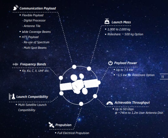 Sahip olduğu elektrikli itki sistemi teknolojisi ile optimize edilerek hacmi küçültülebilen haberleşme uyduları; Ka, Ku, X, C, S, L, UHF ve son kullanıcı ihtiyaçlarına göre tanımlanabilecek diğer frekans bantlarında kriptolu veya kriptosuz olarak hizmet verebilecek şekilde yapılandırılmıştır.