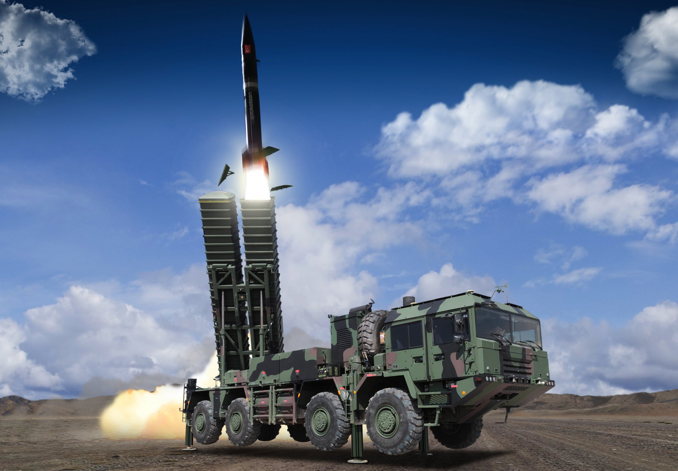 Kara taarruz sistemleri hiyerarşisinde YILDIRIM’dan bayrağı devralan BORA (ihraç adıyla KHAN), Türkiye’nin operasyonel menzilini ve vuruş hassasiyetini bir üst seviyeye taşıyan ana vurucu güçtür. Yaklaşık 2.500 kg ağırlığında ve 7,1 metre uzunluğunda devasa bir mühimmat olan BORA, karadan karaya 285 km mesafedeki stratejik hedefleri imha etmek üzere optimize edilmiştir. 8×8 tekerlekli yüksek mobiliteli araçlar üzerinden ateşlenmektedir.