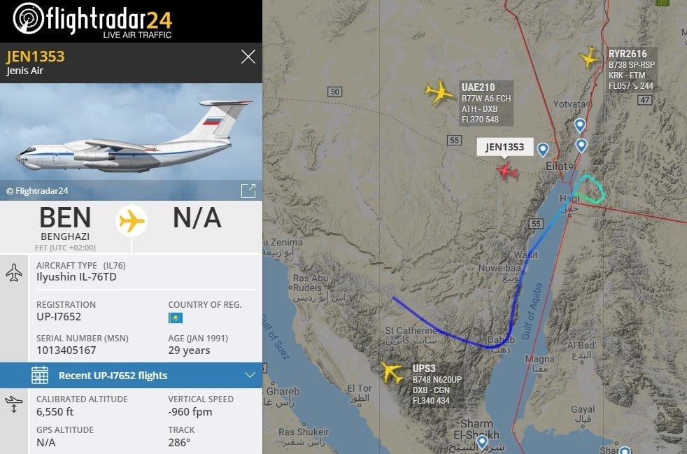 Uçuş verilerine göre o gün Ürdün’den Bingazi’ye uçan Jenis Air şirketine ait Il-76TD uçağını görünmekte. Belirtilen uçağın daha önce Birleşik Arap Emirlikleri ve Ürdün’den Libya’ya uçuşlar yaptığı biliniyor.