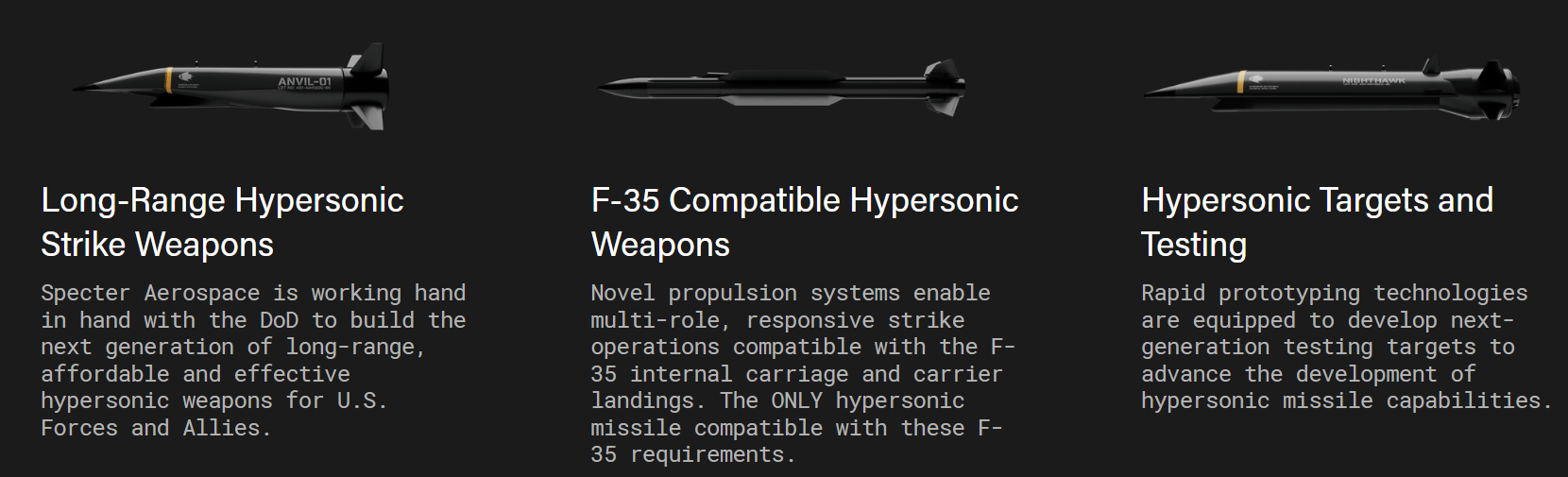 Bu iş birliği ile Specter Aerospace’in ramjet-scramjet itki, araç tasarımı ve aviyonik alanındaki uzmanlığı; SNC’nin görev entegrasyonu, hava aracı geliştirme ve hava savunma sistemlerindeki kanıtlanmış deneyimlerini bir araya getirerek modern savunma operasyonlarının değişen ihtiyaçlarını karşılamak üzere tasarlanmış bir havadan fırlatılan füze ürün ailesi sunmayı amaçlanmakta. Platformun uçuş testleri 2026 yılının 3. çeyreği için planlanırken hava aracı ve motorun testleri ise halihazırda devam ediyor.